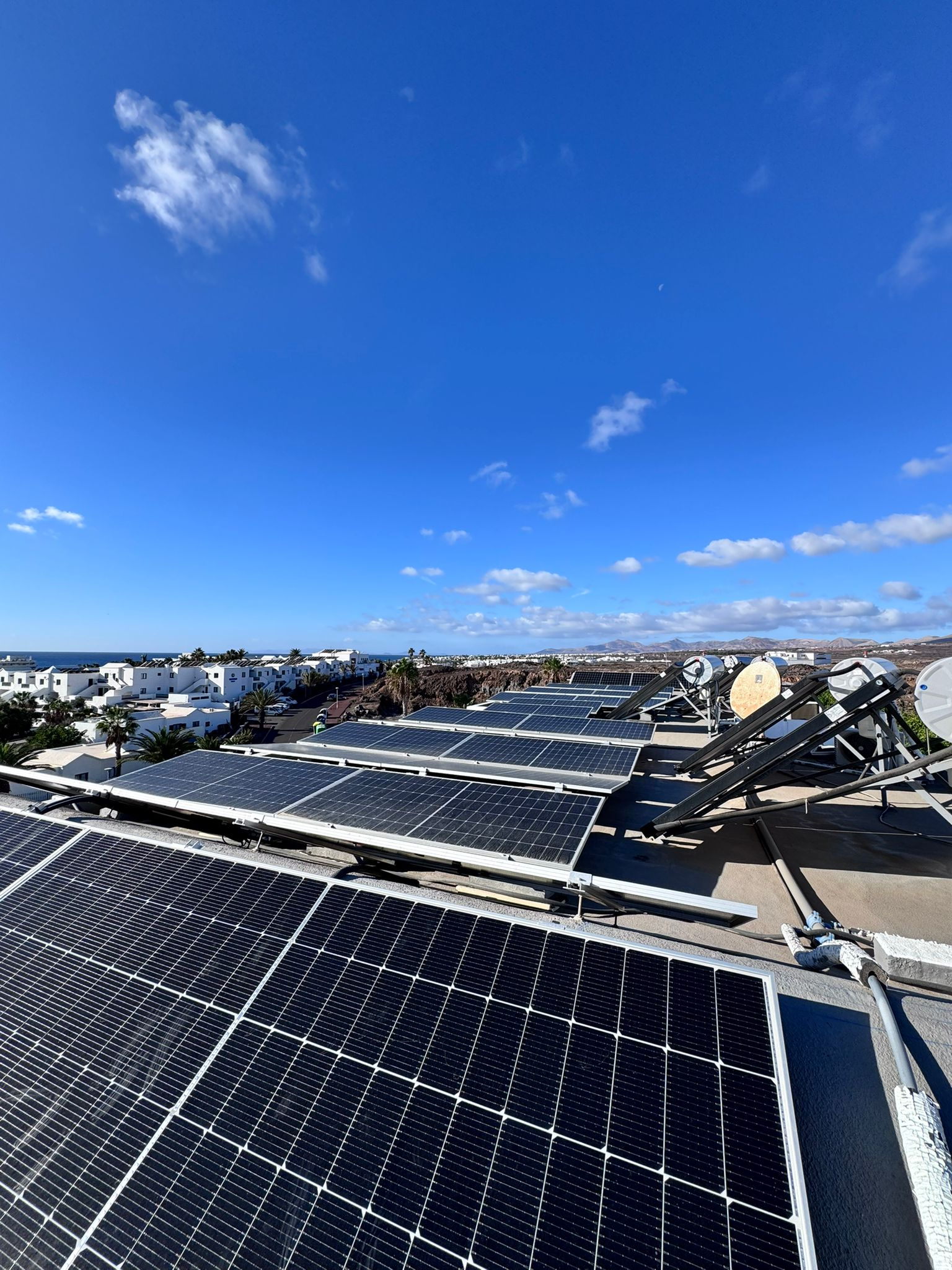 En Apartamentos Villa Canaima, ubicados en Matagorda, Puerto del Carmen (Lanzarote), hemos llevado a cabo la instalación de un sistema de energía solar fotovoltaica, reforzando nuestro compromiso con la sostenibilidad y la eficiencia energética.